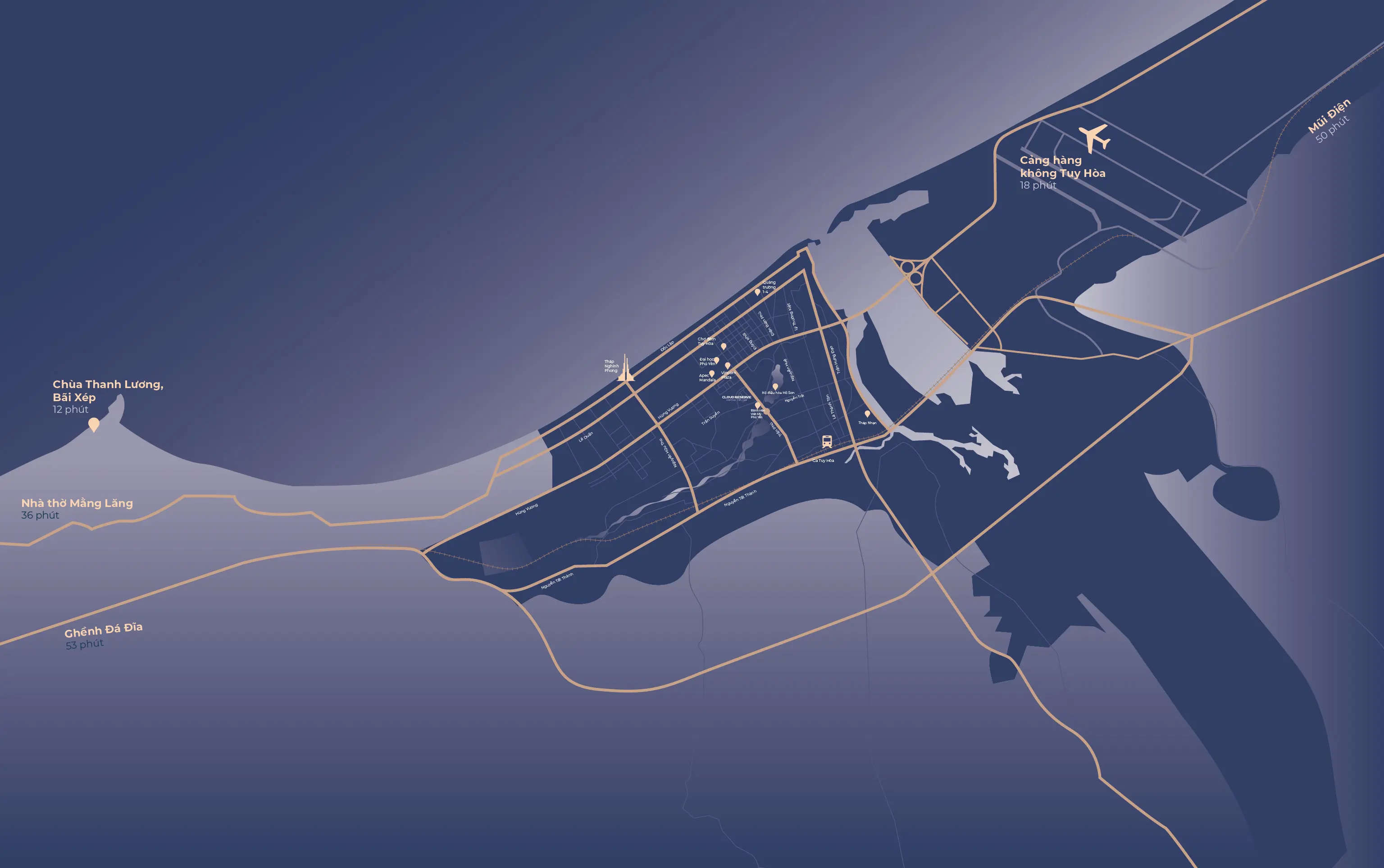 Vừa kết nối trực tiếp trung tâm hành chính - thương mại sầm uất, vừa liền kề tuyến ven biển và cao tốc Bắc Nam, CLOUD RESERVE CENTRAL TUY HOA trở thành tâm điểm đón đầu làn sóng đô thị hoá và bùng nổ du lịch.
